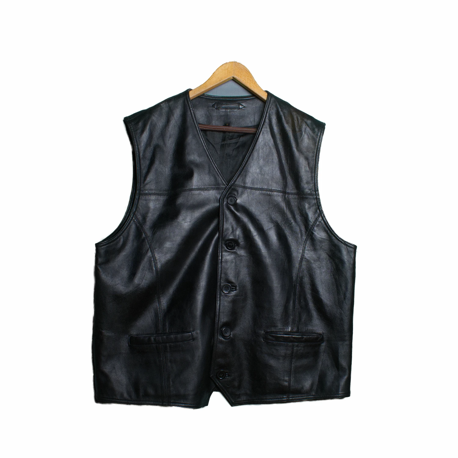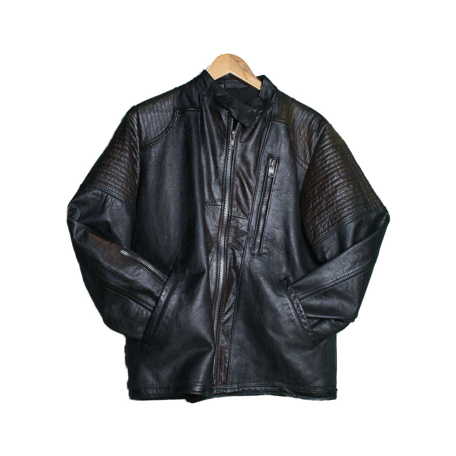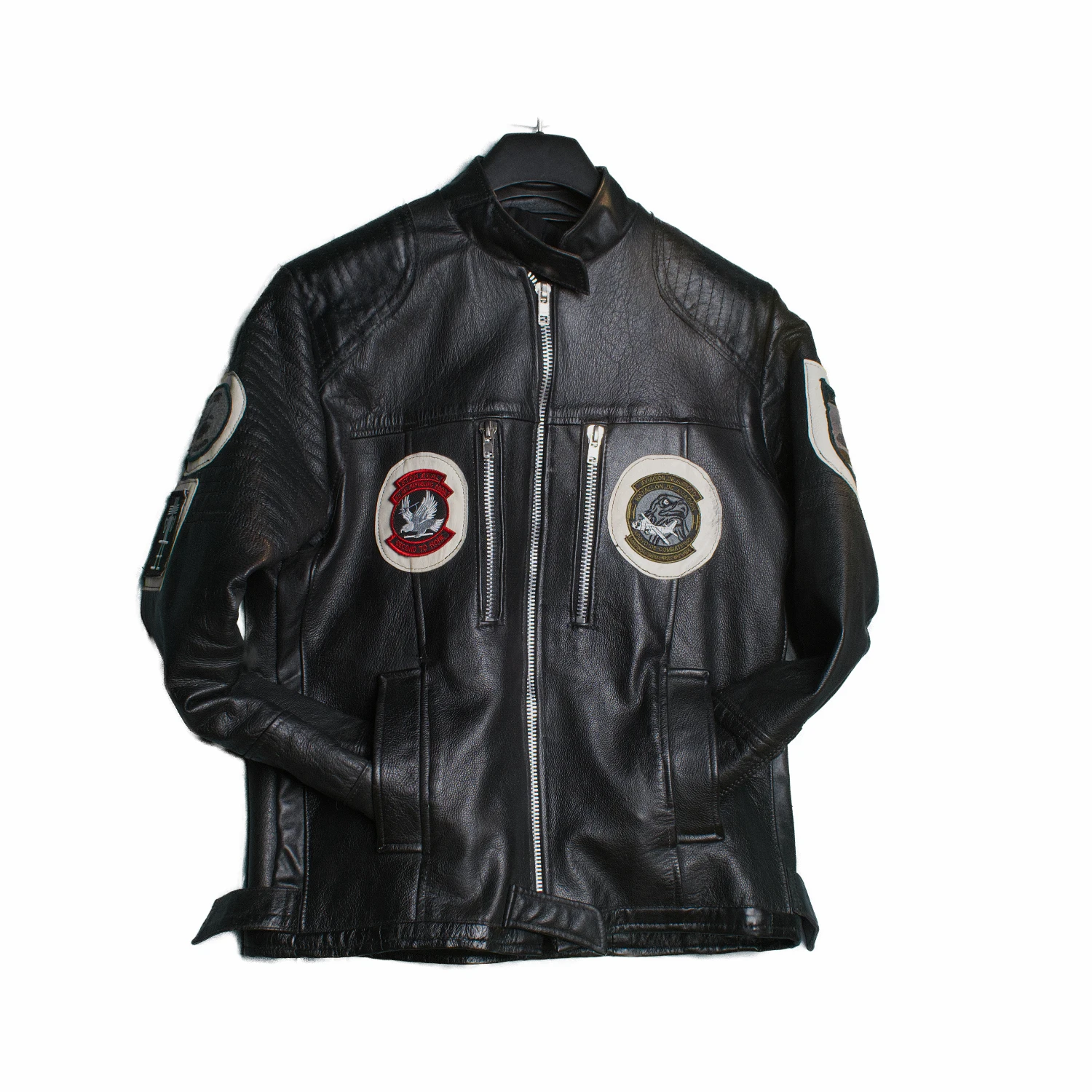 Cuero negro con parches.